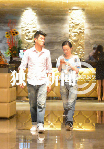 到了出發(fā)口她三步并作兩步地來(lái)到自己平時(shí)乘坐的商務(wù)汽車前,這時(shí)杜江下了汽車,對(duì)女友笑臉相迎,并體貼地“保護(hù)”女友上車。