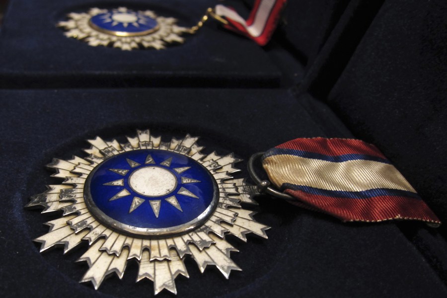 “青天白日勛章”設(shè)立于1929年,是當(dāng)時的國民政府用于表彰優(yōu)秀軍職人員的榮譽(yù)象征。在國民政府統(tǒng)治大陸時期,青天白日勛章獲得者僅191人,其中因抗擊日寇獲得的就有166人。青天白日勛章陸??哲娡ㄓ?,不分等級,僅次于國光勛章。