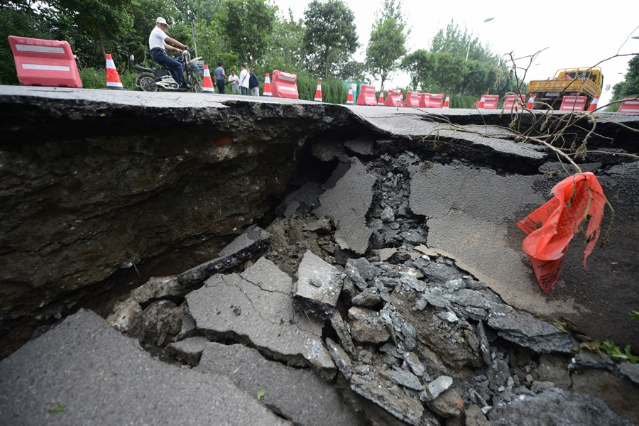 8月22日,江蘇省揚(yáng)州市臨江路一處路面突然發(fā)生塌陷,塌陷路面深約3米、面積約48平方米。據(jù)現(xiàn)場相關(guān)部門工作人員介紹,路面塌陷是由于水管漏水沖刷導(dǎo)致。