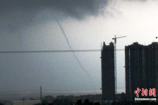 8月22日中午,廣西北海市南澫海域先后出現(xiàn)四股“龍吸水”奇觀。當(dāng)天中午12時許,北海市上空突然烏云密布,雷聲轟鳴,下起傾盆大雨。12時45分左右,該市南澫海域上空先后出現(xiàn)四股“龍吸水”奇觀,并被附近居民拍攝下。目擊市民稱,四股“龍吸水”先后出現(xiàn)在相同方位,整個過程約持續(xù)7分鐘。圖為第四股“龍吸水”。