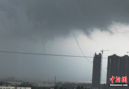 8月22日中午,廣西北海市南澫海域先后出現(xiàn)四股“龍吸水”奇觀。當(dāng)天中午12時(shí)許,北海市上空突然烏云密布,雷聲轟鳴,下起傾盆大雨。12時(shí)45分左右,該市南澫海域上空先后出現(xiàn)四股“龍吸水”奇觀,并被附近居民拍攝下。目擊市民稱,四股“龍吸水”先后出現(xiàn)在相同方位,整個(gè)過程約持續(xù)7分鐘。圖為第三股“龍吸水”。