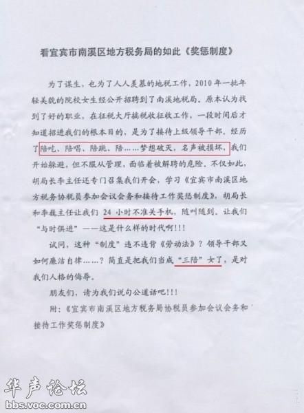 22日,宜賓市政府相關(guān)負責(zé)人表示,南溪區(qū)地方稅務(wù)局印發(fā)的《宜賓市南溪區(qū)地方稅務(wù)局協(xié)稅員參加會議會務(wù)和接待工作獎懲制度》已被廢止,該事件的直接負責(zé)人、南溪區(qū)地稅局局長李鳴、副局長胡德頻已被停職檢查,待事件查清后會對二人作出進一步處理。