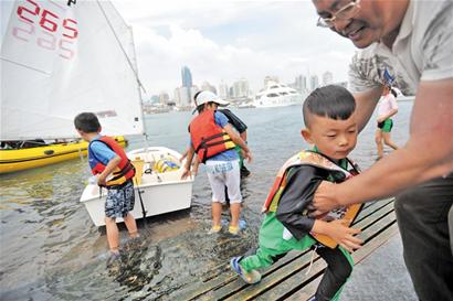 昨天一早,多多就隨著小隊員們趕到了奧帆中心的帆船碼頭,然而當(dāng)多多的父親何烈勝忙活著為兒子的比賽做最后準(zhǔn)備時,卻接到了組委會現(xiàn)場工作人員的通知,多多年齡太小,加上風(fēng)浪過大,不能參加比賽?!八麄儞?dān)心多多出危險,而且可能會影響其他小選手的比賽?!苯拥酵ㄖ螅瘟覄儆行┦?,不斷地與教練交流,希望能通過組委會協(xié)調(diào),讓多多參加比賽。