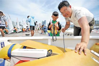 看著其他的小選手都把船拖到了出航的壩邊,多多似乎也意識到了什么,獨自站在隊友的身后,看著大家出發(fā)。“多多,大海上的風(fēng)浪很大,你怕不怕?”看到一排帆船的風(fēng)帆被大風(fēng)吹得“呼啦呼啦”作響,多多稍稍點了點頭,可隨后就很“豪氣”地說:“金牛湖上的浪也很大,我也能行,青島這邊就是風(fēng)大一點?!倍喽嗟难劬χ敝钡囟⒅⊥榈谋秤?。