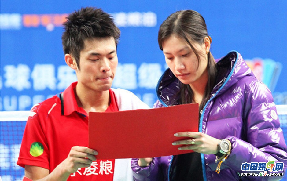 資料圖:2011年中國羽毛球超級聯(lián)賽第1輪,八一vs廣州,謝杏芳到場助威愛郎林丹,“神雕俠侶”送上新春祝福。