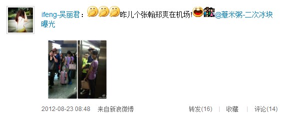 網(wǎng)友拍張翰鄭爽同游泰國度假 照片粉碎分手傳言(圖)
