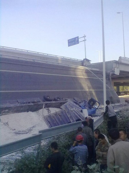 8月24日晨5點(diǎn)30分許,哈爾濱陽明灘大橋引橋發(fā)生坍塌,四輛大型貨車墜橋,已經(jīng)導(dǎo)致多人傷亡。圖為事發(fā)現(xiàn)場。
