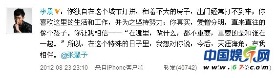 張馨予疑似承認與李晨相戀 稱遇到對的人