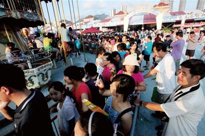 記者在現(xiàn)場還注意到,有不少大學(xué)生也是結(jié)伴來游玩。高洋是中國海洋大學(xué)二年級的研究生,女朋友從濟南趕過來看他?!拔沂堑诙陰淹婕文耆A?!备哐蟾嬖V記者,剛開學(xué)不到一周,功課不太緊張而且周末時間也多,所以多陪陪女友。