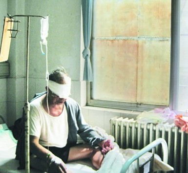 ????記者隨后在膠州市人民醫(yī)院南院五官科病房見到了受傷的老人,他的雙眼被厚厚的紗布遮住,后腦勺處血跡斑斑,腿部、腳上隨處可見被碎玻璃劃傷的傷痕?!拔移鹪缛ペs集,突然聽到‘ 轟’的一聲,就被‘震’到草叢里 ,根本來不及反應(yīng),等我坐起來時(shí)什么都看不見,只覺得臉上不住地流血?!苯衲?0歲的范大爺心有余悸地說。