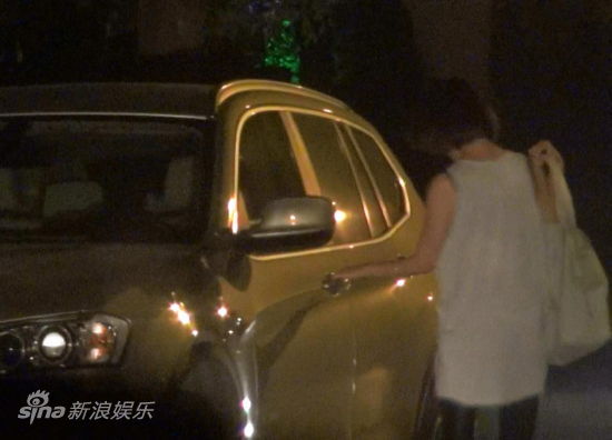 袁泉素雅白裙收工回家 與神秘文藝男路邊聊天