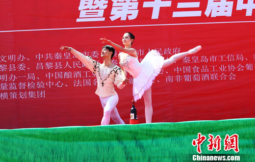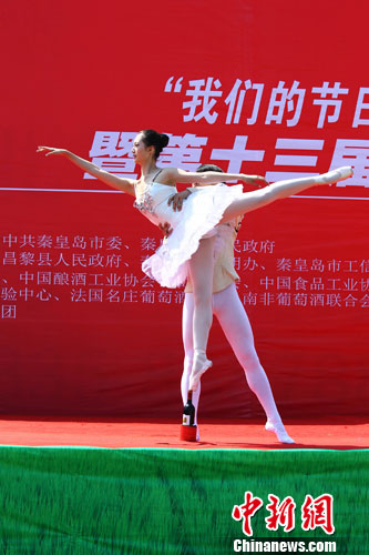 2012年8月23日,傳統(tǒng)七夕節(jié),又被認為是“中國情人節(jié)”。河北省昌黎縣,伴隨著一曲如泣如訴的協(xié)奏曲《梁?!?,一對年輕情侶以優(yōu)雅浪漫的舞姿在葡萄酒瓶上跳起芭蕾,踮起腳尖示愛,將愛情與紅酒完美的結(jié)合,他們的芭蕾舞將東西方元素巧妙融合,呈現(xiàn)出別樣之美,令現(xiàn)場觀眾如癡如醉,讓人們不禁回味“浪漫七夕,愛在酒鄉(xiāng)“的浪漫意境。