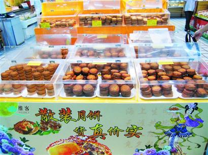 在維客超市里,記者看到散裝月餅占據(jù)了很大柜臺。19.8元一斤的散裝棗泥月餅、36元一斤的八寶月餅受到消費者歡迎。“把口味做好了,用好材料保證質(zhì)量才是王道,消費者自己買月餅還是認沒包裝的。”商場銷售人員說,這些散裝自制月餅是今年市場新寵,沒了包裝更實惠。此外,記者還發(fā)現(xiàn)了一種“老包裝”月餅,用一張油紙包住月餅,再附上一張紅紙,包裝非常簡單,但中國味十足。