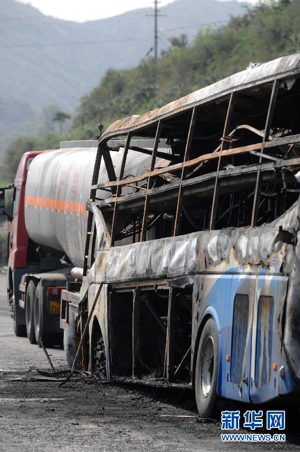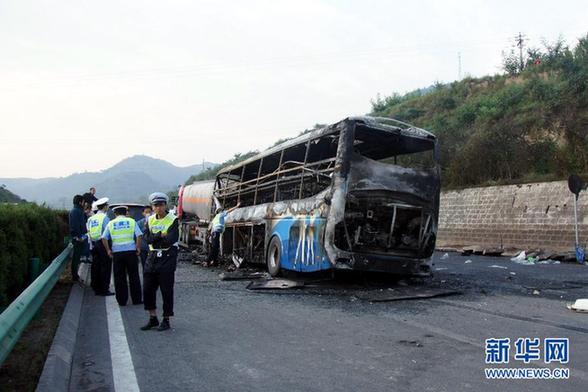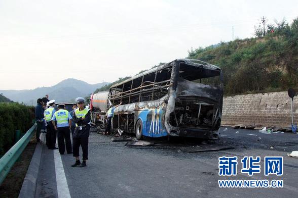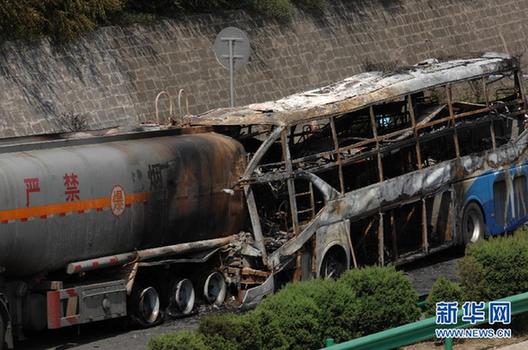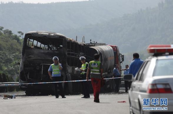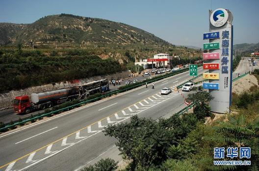 ????8月26日2時(shí)18分左右,位于陜西省延安市安塞縣境內(nèi)的包茂高速安塞服務(wù)區(qū)附近發(fā)生一起特大交通事故,一輛滿載旅客的雙層臥鋪客車與一輛運(yùn)送甲醇的重型罐車發(fā)生追尾碰撞,隨后燃起的大火導(dǎo)致客車上36人死亡,3人受傷。