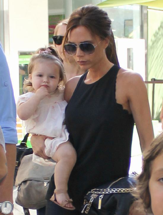 辣妹抱愛女表情一成不變 小七沖天辮似洋娃娃(組圖)