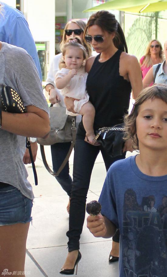 維多利亞單手抱愛(ài)女小七現(xiàn)身