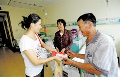 “田奎,一定要手術(shù)成功??!”昨天下午,一名不愿意透露姓名30歲左右的“微塵哥”來到401醫(yī)院腎病中心病房,他塞給田奎一個信封后,轉(zhuǎn)身離開了,這個信封里裝著3萬元現(xiàn)金。連日來,田典平和田奎父子情深的故事,感染了很多市民,他們或者發(fā)短信表示祝福,或者把救助款直接送給田奎。截至昨晚,田奎收到社會各界愛心款5.3萬元,手術(shù)費湊齊了,明天就可以進行腎臟移植手術(shù)。