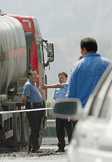官員在事故現(xiàn)場開口笑