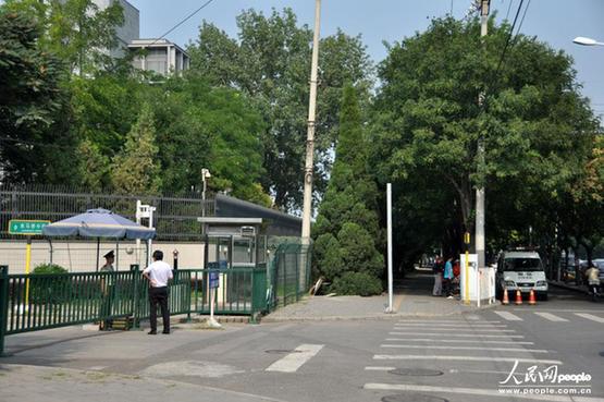 2012年8月28日下午,一輛警車停放在日本駐華大使館西側(cè)的亮馬橋中街南口。便衣在旁戒備。當(dāng)日,北京警方加強了對日本駐華大使館官邸的保護。
