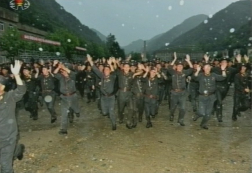 金正恩視察前線部隊(duì) 暴雨中不打傘
