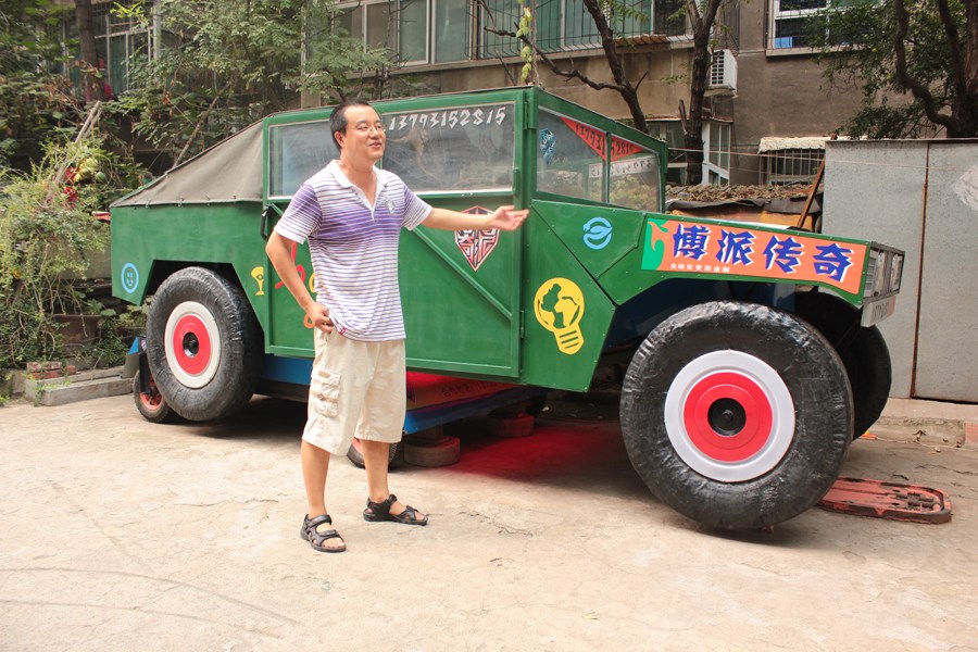 8月30日,劉慶博和他的悍馬車模型,趴下就是個悍馬,站起來則是機(jī)器人。張爰杰