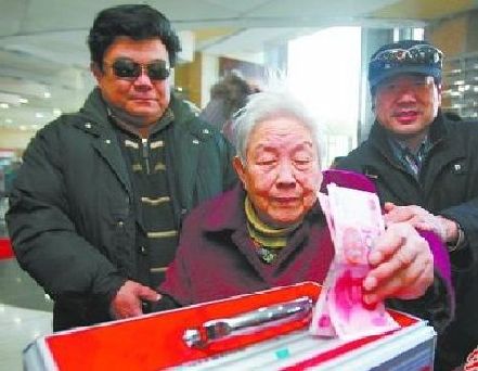 90歲的吳老太將省吃儉用存下的400元捐給小王璇和小奧帆