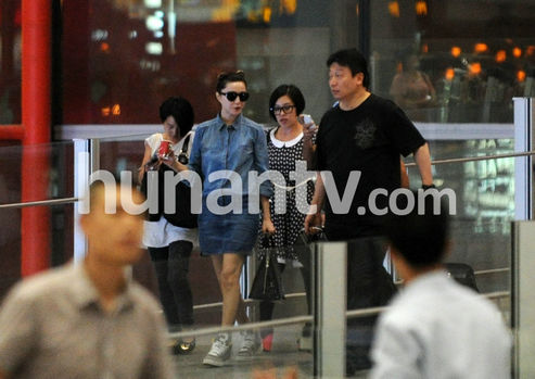 范冰冰回京經(jīng)紀人護駕 牛仔連身衣活像阿拉蕾(圖)