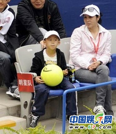 蔣雯麗陪小帥哥兒子參加幼兒園舉辦的親子活動(dòng)。