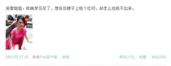 網(wǎng)友猜測(cè)芙蓉姐姐這是想劉翔想瘋了