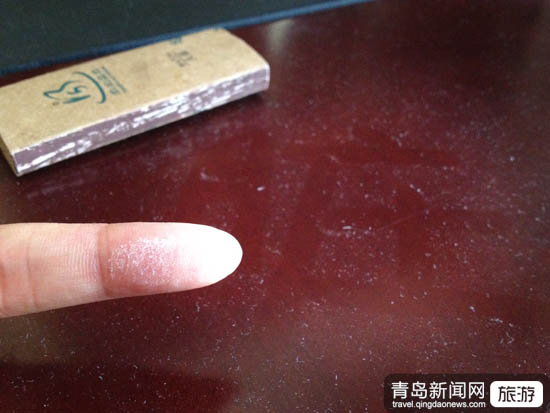 ????在房間外等候半個小時后,工作人員才將房間打掃完畢,可當(dāng)記者進(jìn)入房間后,卻發(fā)現(xiàn)了很多難以忍受的問題,記者發(fā)現(xiàn)入住房間的寫字臺上,落滿了一層厚厚的灰塵,看樣子已經(jīng)很久沒有擦過了,輕輕一抹,手指上就是一層厚厚的灰塵,而床邊的床頭柜也同樣如此。記者隨后立即找到酒店工作人員,要求重新打掃衛(wèi)生,可酒店工作人員卻告訴記者,需要找當(dāng)時打掃衛(wèi)生的人來清理。等待半個小時候酒店的工作人員才重新出現(xiàn)擦了桌子。