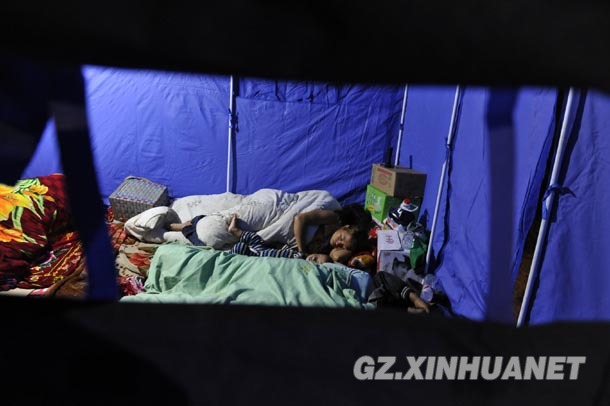 新華網(wǎng)貴州頻道9月8日電(記者胡星)8日凌晨3時(shí),威寧縣云貴鄉(xiāng)枧角村官寨組一片空曠的山坡上,藍(lán)色的救災(zāi)帳篷里,王朝花13的兒子和11歲的女兒早已睡熟了,聽(tīng)著孩子們睡夢(mèng)中發(fā)出的均勻呼吸聲,這名38歲的彝族母親,心里才終于平靜和踏實(shí)下來(lái)。