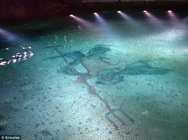 游泳池底鋪彩色玻璃呈海神波塞冬圖像