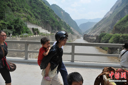 9月8日,云南彝良地震震中洛澤河鎮(zhèn)附近,不斷發(fā)生的余震引發(fā)山體落石。截止8日早上8時(shí),云南彝良地震災(zāi)區(qū)發(fā)生余震161次,最大余震4.4級(jí)。圖為緊急疏散至安全地帶的災(zāi)區(qū)民眾。劉冉陽攝