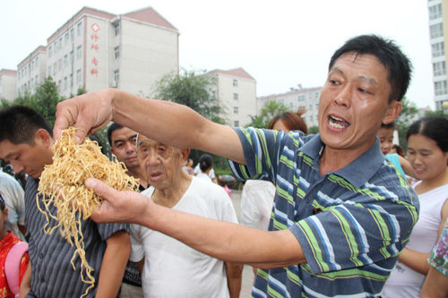 一家長抓了一把蒸面條向記者介紹說:“這面條是兩天前孩子們吃剩下的,放到冰箱里,準(zhǔn)備今天再讓孩子們吃,大家可以聞聞,都有異味了?!?/p>