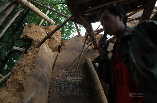 2012年9月9日,朱銀全在云落小學(xué)的廢墟內(nèi),地震發(fā)生后,他趕到現(xiàn)場(chǎng),徒手挖出了被掩埋的七名學(xué)生。