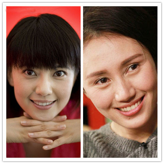 79年出生的高圓圓和77年出生的袁泉,比起高圓圓的甜美五官,袁泉略顯老態(tài)