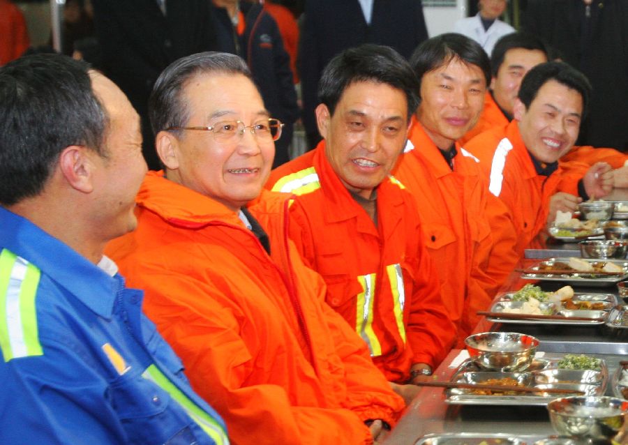 2009年元旦,溫家寶總理來青島港看望碼頭工人,與徐萬年共進(jìn)午餐