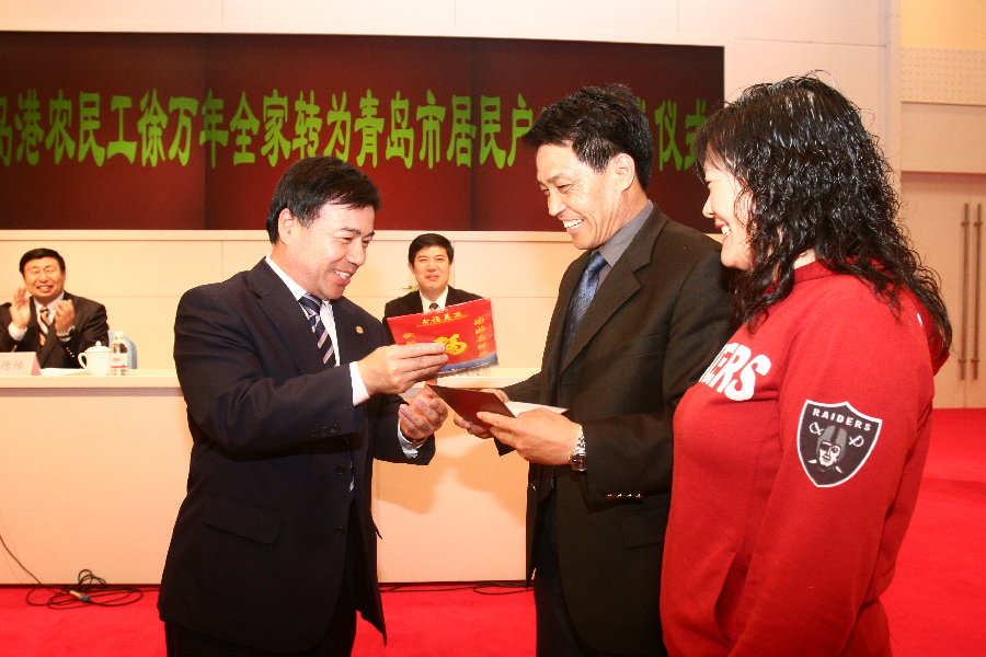 2008年5月27日,青島港農(nóng)民工徐萬年全家轉(zhuǎn)為青島市居民戶口