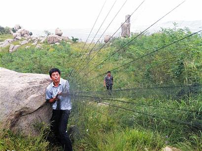 “前兩天去田橫島旅游,發(fā)現(xiàn)附近山上有不少鳥網(wǎng),隔著好幾公里就