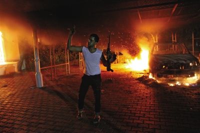 11日晚,數(shù)百名武裝分子沖入班加西美國領(lǐng)事館,抗議一部當天在此放映的美國電影詆毀伊斯蘭教先知穆罕默德,并同領(lǐng)事館安全人員發(fā)生交火。