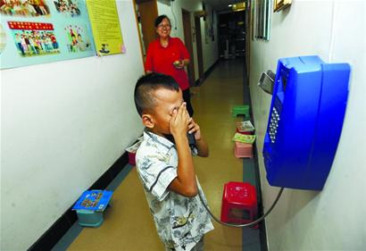 晚上7時(shí)30分左右,孩子們洗漱完準(zhǔn)備上床了,宿舍走廊的電話響了,是郭翰文媽媽打來(lái)的。聽(tīng)到老師喊自己的名字,郭翰文高興地從自己的宿舍跑出來(lái),每天這個(gè)時(shí)間媽媽都會(huì)準(zhǔn)時(shí)打來(lái)電話。