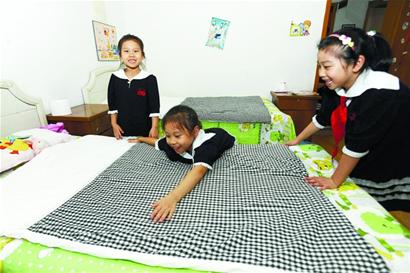 前天晚上6時(shí)30分許,記者來(lái)到這里,住在宿舍樓3樓的一年級(jí)小學(xué)生們正在輪流洗澡,在生活老師的幫助下,兩名孩子一起走進(jìn)浴室,自己往身上抹肥皂、沐浴液,每個(gè)動(dòng)作都很嫻熟?!伴_(kāi)學(xué)剛?cè)胱〉臅r(shí)候,大部分孩子什么都不會(huì),現(xiàn)在這些孩子的動(dòng)手能力提高了很多?!睂W(xué)校住宿部主任徐靜梅說(shuō)。