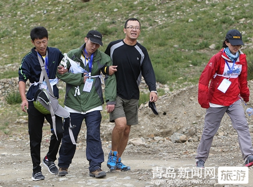 青島選手陳韶(左一)在個人沖刺終點后,又折回幫扶隊員一起前進(jìn)