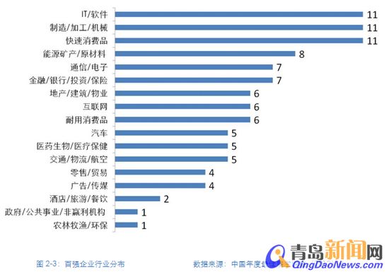 ????百?gòu)?qiáng)企業(yè)的行業(yè)分布來看,IT、制造業(yè)、快速消費(fèi)品行業(yè)并列第一,分別占據(jù)百?gòu)?qiáng)榜單的11席。行業(yè)體量大、企業(yè)實(shí)力強(qiáng)、員工福利待遇優(yōu)厚等均在一定程度上促進(jìn)了這些行業(yè)的企業(yè)晉級(jí)最佳雇主百?gòu)?qiáng)榜單。此外,在經(jīng)濟(jì)實(shí)力上并不占據(jù)優(yōu)勢(shì)地位的政府/公共事業(yè)/非贏利機(jī)構(gòu)行業(yè)和農(nóng)林牧漁/環(huán)保行業(yè)均有企業(yè)晉級(jí)最佳雇主百?gòu)?qiáng)榜單。
