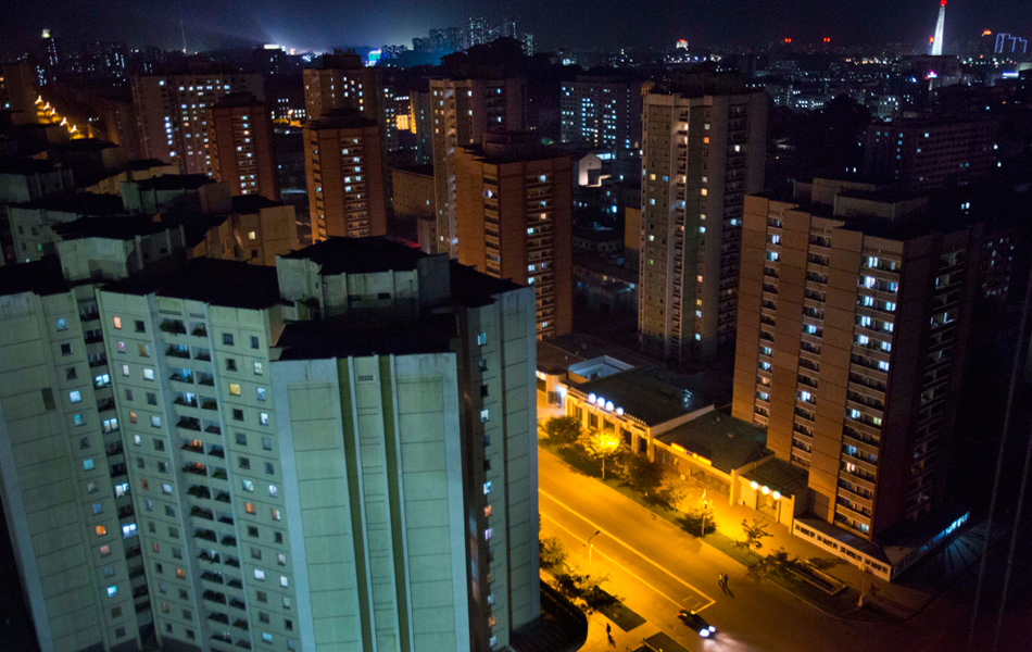 2012年9月7日,平壤,一輛小轎車駛過市中心的街道。David Guttenfelder/攝
