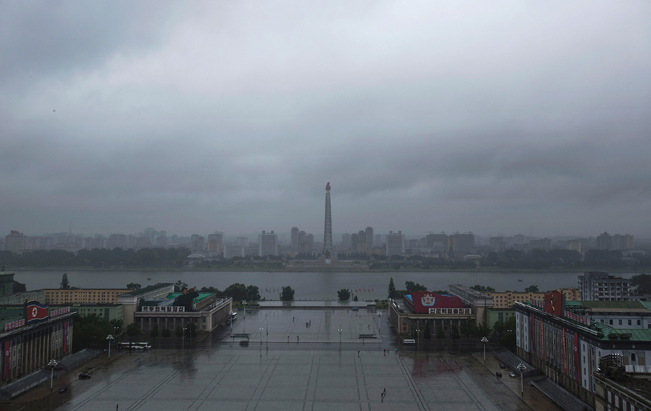 2012年9月8日,微雨的清晨,主體思想塔高高聳立在平壤市區(qū)。David Guttenfelder/攝