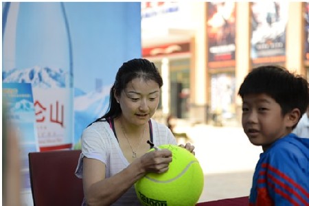 一位剛與晏紫合影后的年輕媽媽感嘆 “很感謝昆侖山礦泉水提供這樣一次,能見(jiàn)證榮耀,并與晏紫零距離親密接觸的機(jī)會(huì),讓我們真切地體驗(yàn)到了網(wǎng)球的魅力!“