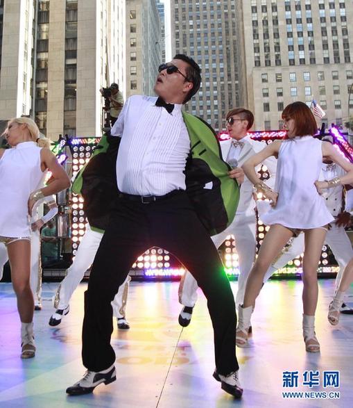 韓國流行歌壇老將樸載相(也稱Psy)近期憑借一曲《江南Style》風靡多國樂壇。這首歌的音樂錄影在一家知名視頻網站上的點擊率已超過2.7億人次。業(yè)界分析人士認為,這首歌之所以在韓國流行、在歐美受到熱捧,是因為歌曲風格幽默而諷刺、樸載相未經后天“加工”的形象以及他那別具特色的馬步舞姿。 2012年9月14日,韓國歌手樸載相在美國紐約NBC(全國廣播公司)的“今天”秀上表演。 新華社