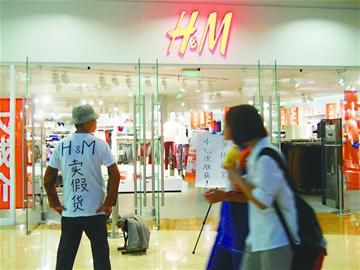 消費(fèi)者叢先生在H&M濟(jì)南專賣店前要求公開(kāi)道歉,吸引了不少人關(guān)注。