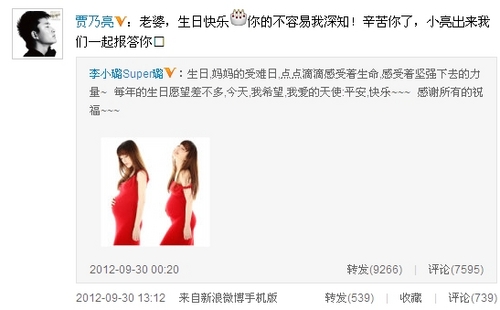 李小璐生日曬性感大肚照 賈乃亮甜蜜謝愛妻(組圖)